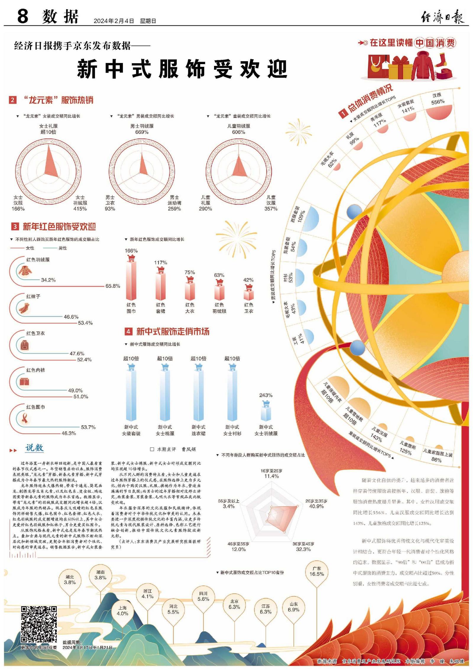 过年添置一身新衣辞旧迎新,是中国人最看重的春节仪式感之一。年货销售启动以来,服饰消费表现亮眼,“龙元素”穿搭、新春元素穿搭、新中式穿搭成为今年春节最火热的服饰潮流。