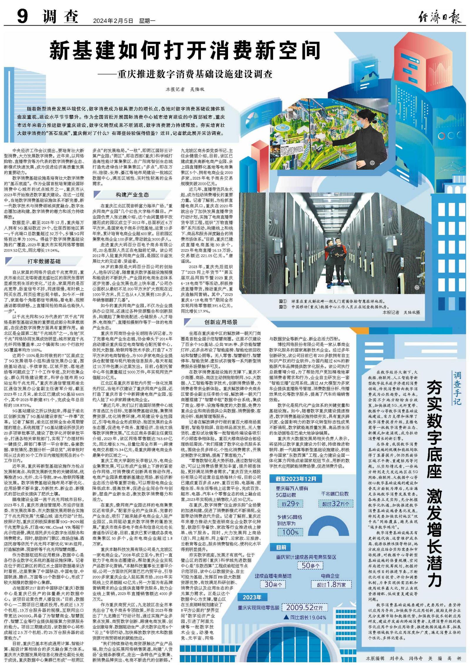 数字消费基础设施是培育壮大数字消费的“基石底座”。作为全国首批培育建设国际消费中心城市的试点城市之一,重庆市从2023年开始推进数字重庆建设。在这一过程中,当地数字消费基础设施体系不断完善,新一代数字技术与消费领域深度融合,数字生态圈加速构建,数字消费的潜力和活力持续释放。
