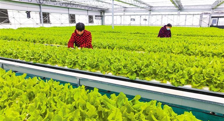 2月7日,安徽省肥东县桥头集镇雾耕现代农业科技园,员工正在管护雾培生菜。近年来,当地创建智慧农业示范产业园,开展标准化种植,提升城市净菜产业规范化水平。