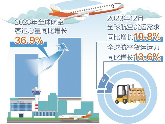 全球航空货运市场的表现同样可圈可点。全球航空货运市场定期数据显示,全球航空货运需求回升,2023年四季度进入传统的年终旺季后,表现尤为强劲。其中,2023年12月,全球航空货运需求同比增长10.8%,是过去两年来最强劲的增长表现。与此同时,全球航空货运运力也有所增长,同比增长13.6%。