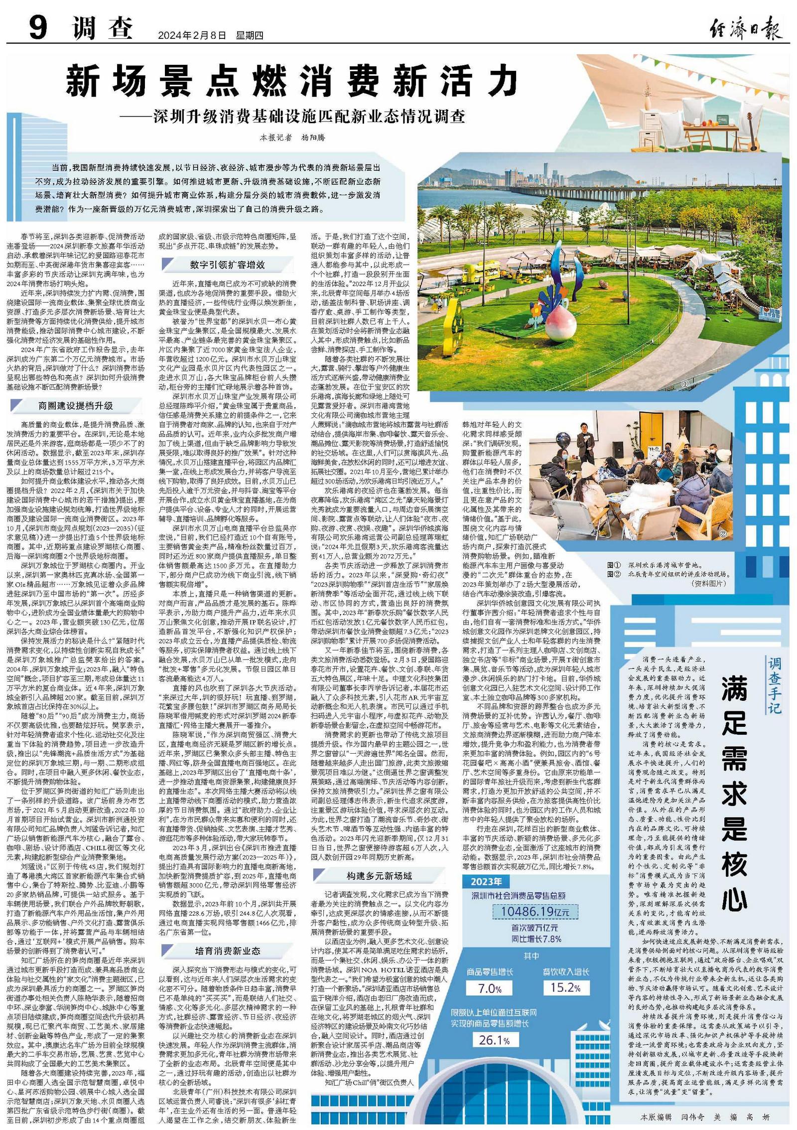 当前,我国新型消费持续快速发展,以节日经济、夜经济、城市漫步等为代表的消费新场景层出不穷,成为拉动经济发展的重要引擎。如何推进城市更新、升级消费基础设施,不断匹配新业态新场景、培育壮大新型消费?如何提升城市商业体系,构建分层分类的城市消费载体,进一步激发消费潜能?作为一座新晋级的万亿元消费城市,深圳探索出了自己的消费升级之路。