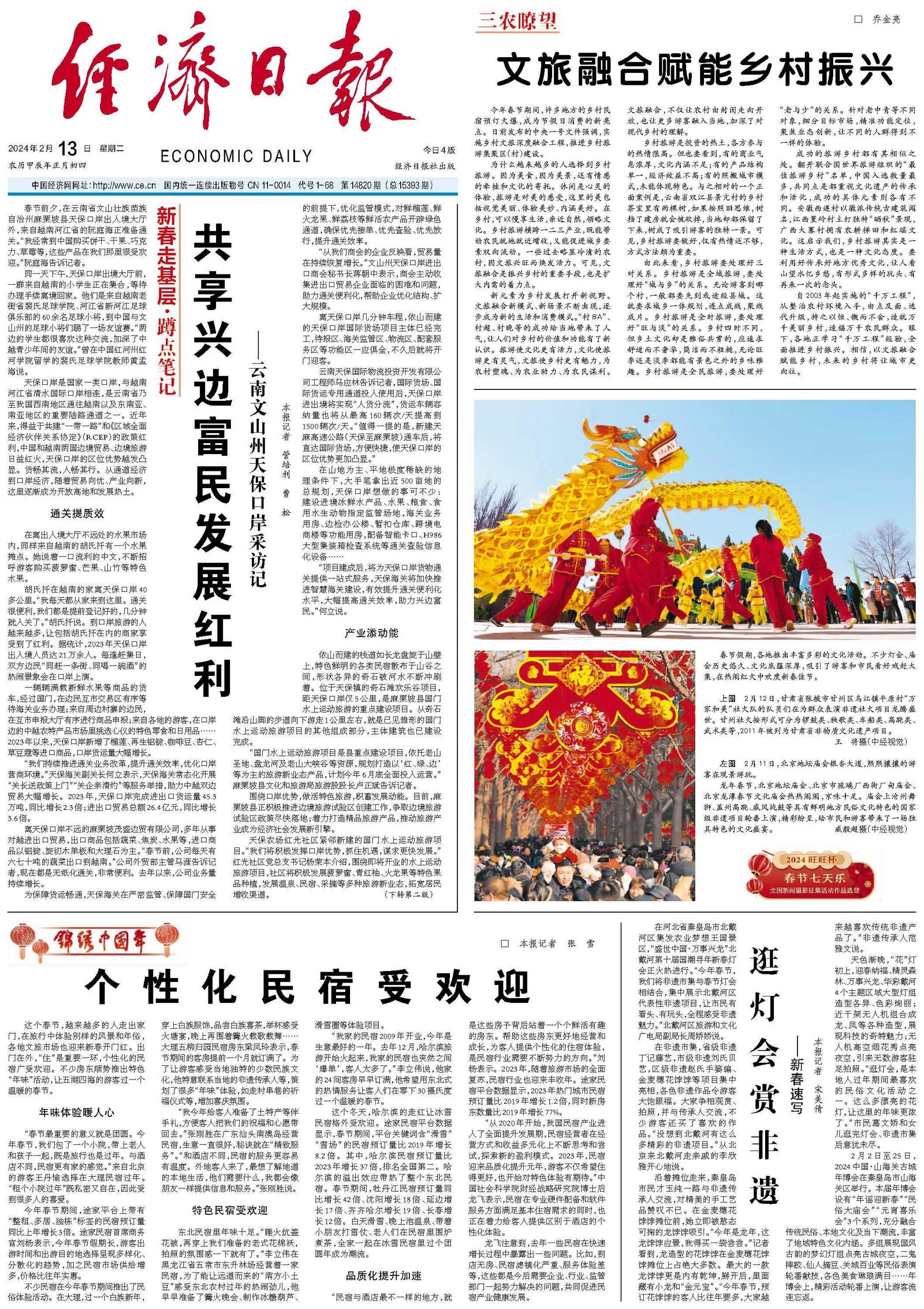 2月2日至25日,2024中国·山海关古城年博会在秦皇岛市山海关区举行。本届年博会设有“年谣迎新春”“民俗大庙会”“元宵喜乐会”3个系列,充分融合传统民俗、本地文化及当下潮流,丰富了地域特色文化内涵。多组展现国风古韵的梦幻灯组点亮古城夜空,二鬼摔跤、仙人摘豆、关城百业等民俗表演轮番献技,各色美食琳琅满目……年博会上,精彩活动轮番上演,让游客流连忘返。