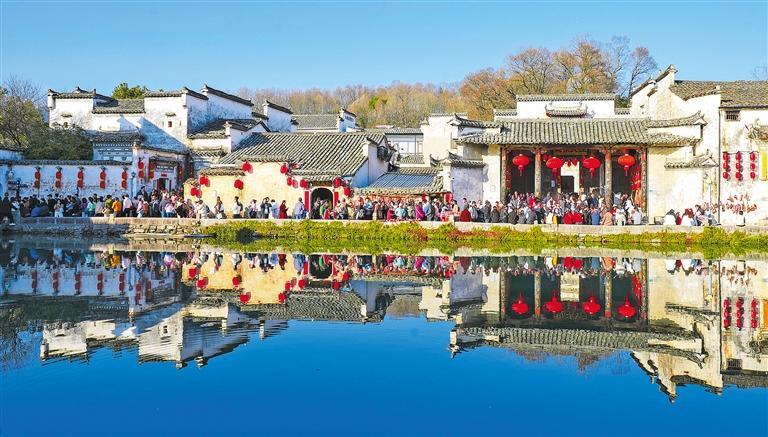⑦2月12日,安徽黟县宏村景区游人如织。龙年春节,全国旅游市场热度不减。