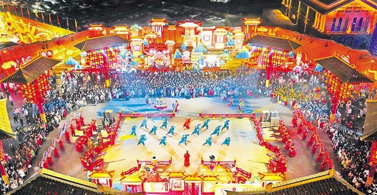 2月12日,游客在宁夏银川市西夏区漫葡小镇看沉浸式演艺、逛非遗街区、游艺术小店,体验传统中国年的别样韵味。