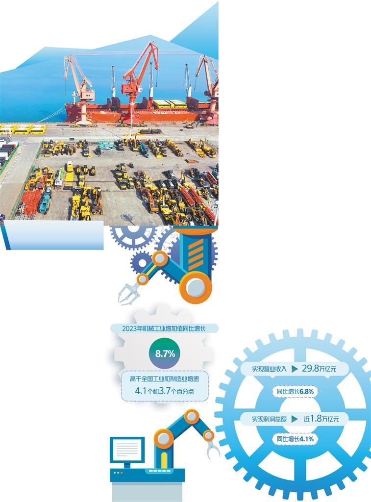 此外,叶定达介绍,在效益指标上,2023年机械工业实现利润总额近1.8万亿元,同比增长4.1%。营业收入和利润总额增速分别比全国工业高5.7个和6.4个百分点,占全国工业的比重分别为22.3%和22.8%,较上年分别提高1.2个和1.4个百分点。