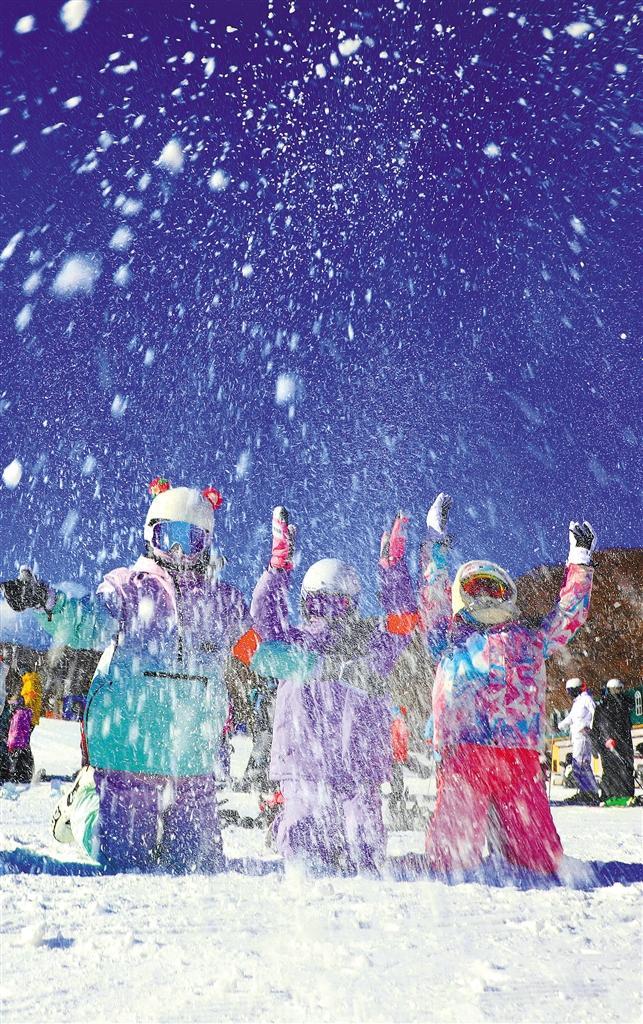 ⑤2月13日,游客在内蒙古自治区呼伦贝尔扎兰屯金龙山滑雪场戏雪,喜迎“十四冬”。