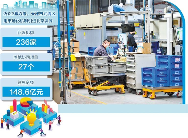从一个重大项目到整个产业链条,从一个产业集群再到整个产业生态圈,京津产业新城发展“滚雪球”效应加速形成。2023年以来,武清区与北京海淀区、北京大兴国际机场临空经济区、天津经开区、天津港集团等签署战略合作协议,用市场化机制引进北京资源,新设机构236家、落地协同项目27个,总投资额达148.6亿元。