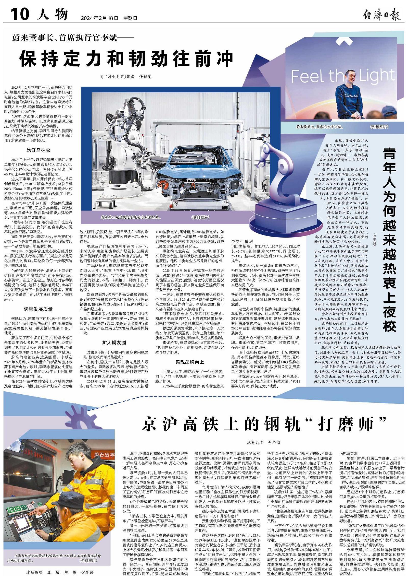 回想2023年,李斌总结了一个关键词:向上。“向上意味着,只要迈开腿就是上坡路。”他说。