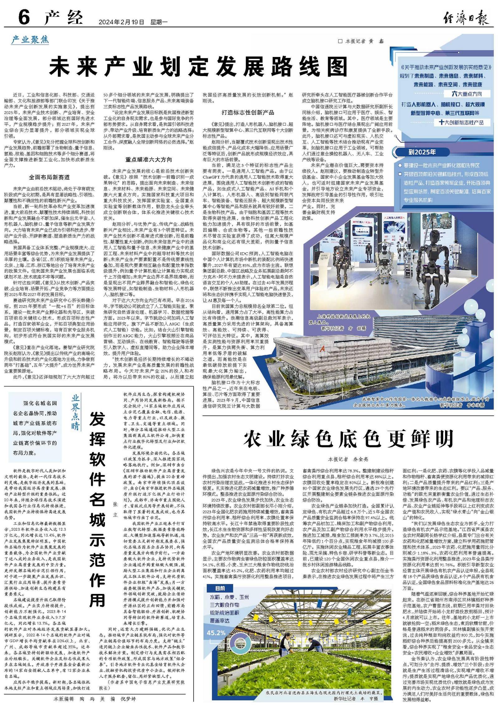 农业绿色产业链条加快打造。全国累计认定绿色、有机农产品超过6.8万个,近5年全国农产品质量安全监测合格率保持在97.4%以上。统筹农产品初加工、精深加工和副产物综合利用,农产品及加工副产物综合利用水平稳步提升。推进加工减损,粮食加工损耗率为3.7%,比2015年降低约1个百分点,实现粮食年均减损100多亿斤。实施休闲农业精品工程,拓展丰富农事体验、观光采摘、特色乡宿、研学科普等新业态。目前,已建设120个全国休闲农业重点县,推介一批乡村休闲旅游精品线路。