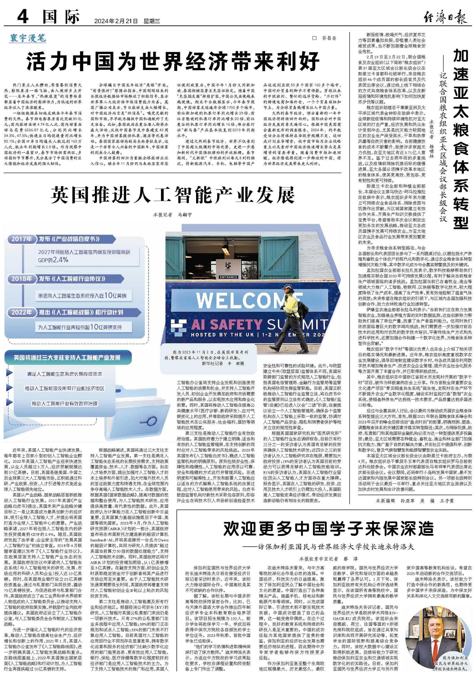 全球瞩目中国龙年经济“亮眼”开局。“前景很好!”彭博社指出,中国刚刚结束的长假经济数据给市场释放了积极信号,显示世界第二大经济体市场消费能力改善。英国广播公司表示,节日旅游支出大幅增长,对中国经济而言是“好消息”。嗅觉灵敏的国际市场,早早就为捕捉中国机遇做好了充足准备。比如,泰国政府在曼谷唐人街举办盛大活动,庆祝中国春节及中泰建交49周年,并为中国游客提供机票、酒店等优惠活动。泰国国家旅游局副局长西普拉表示,这是一个非常令人兴奋的中国新年,中国游客的到来令人鼓舞。