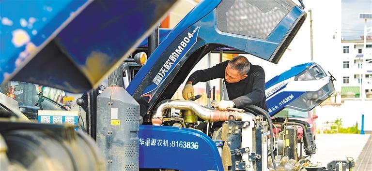 ▲2月18日,江西省大余县青龙镇农事服务中心,村民对拖拉机进行检修保养,备战春耕。