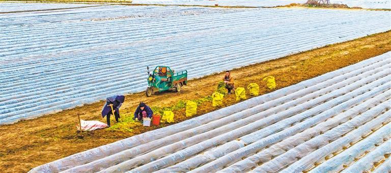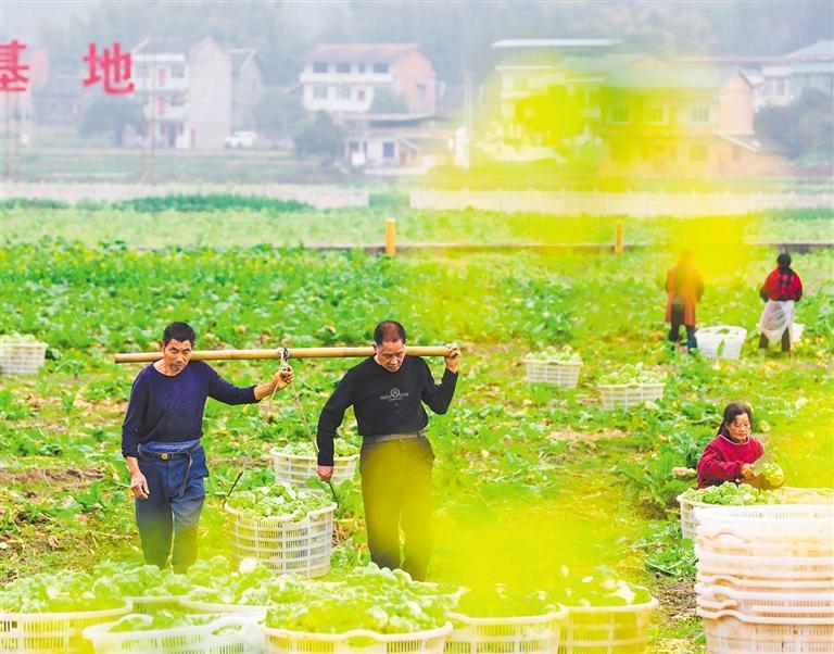 ▶2月19日,重庆市沙坪镇毕桥村,菜农在抢收青菜头。