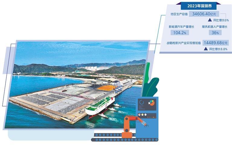 随之而来的是,全球市场“含深量”不断提升。据深圳海关统计,目前,深圳已与200多个国家和地区有贸易往来。2023年,深圳货物进出口总额为3.87万亿元,同比增长5.9%;其中出口为2.46万亿元,规模实现内地城市“31连冠”;新能源汽车、锂电池、光伏“新三样”产品出口额增长33.9%。