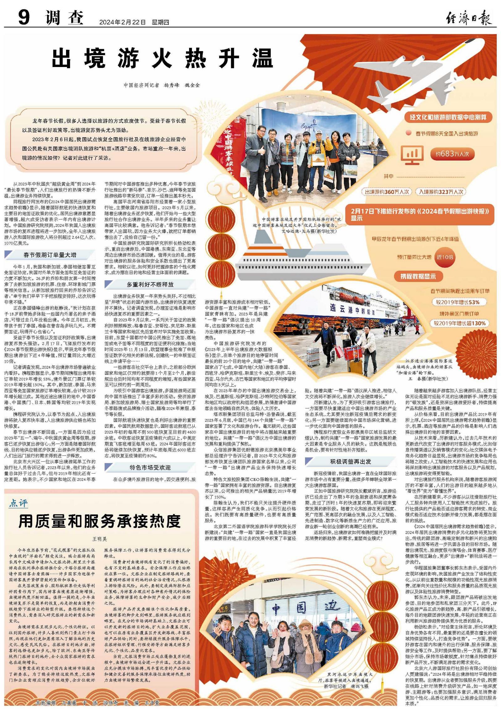 随着越来越多游客加入出境游队伍,经营主体无论是面对经验不足的出境游新手、消费力强的“银发族”,还是资深出境游爱好者,持续提高产品和服务质量是关键。