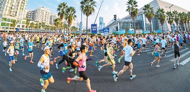 ▼2024建发厦门马拉松赛鸣枪开跑。厦门持续打造生态环保的马拉松赛事,大力发展文旅经济。
