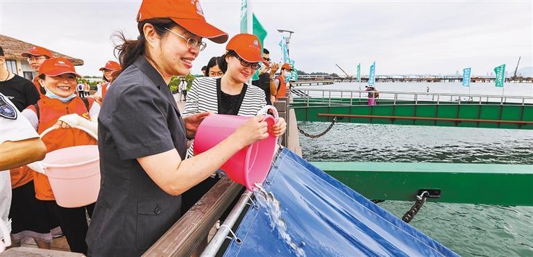 ▲市民在厦门下潭尾红树林湿地公园参加增殖放流活动,共同助力构建红树林生态屏障。