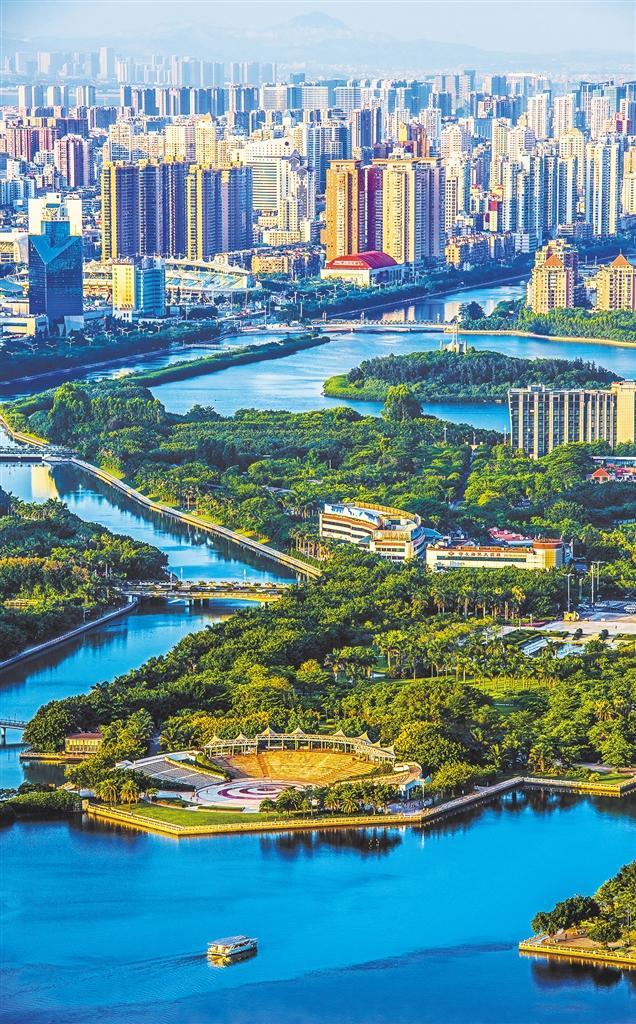 ▶厦门筼筜湖白鹭洲公园,湖水碧波荡漾,沿岸绿意葱茏,是城市的“磁心”和“绿肺”。吴 伟摄(中经视觉)