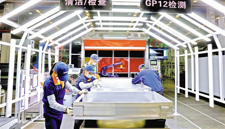 2月23日,福建省福州市闽侯县青口汽车工业园区一处生产车间,工人在生产新能源汽车动力电池结构件产品。近年来,当地通过科技创新、人才引进等多项措施,加大对企业扶持力度,推动产业基础高级化、产业链现代化。