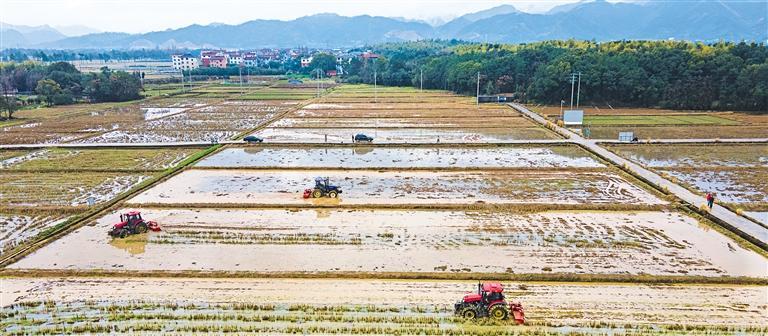 2月23日,浙江省金华市婺城区蒋堂镇前源村稻田里,多台大型旋耕机正在来回翻耕。眼下正值春耕备耕关键期,为抢抓农时,当地种粮大户连日来忙着储备农资,翻耕农田,田野一派繁忙场景。
