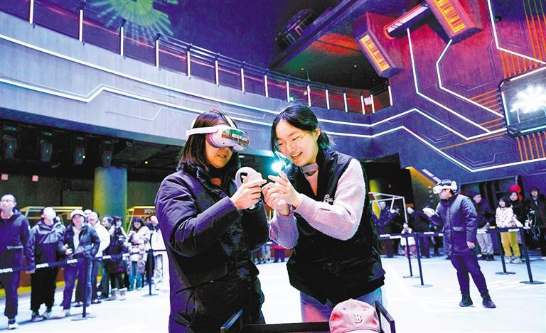 ◀市民在首钢园一高炉科幻乐园体验VR技术。经过改造,这里已成为华北最大虚拟现实体验中心。
