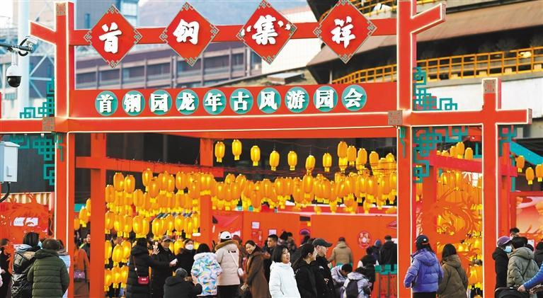 ◀游客参加首钢园龙年古风游园会。2023年,首钢园举办各类活动230余场,实现“周周有活动”,全年入园客流量突破1200万人次,实现跨越式增长。
