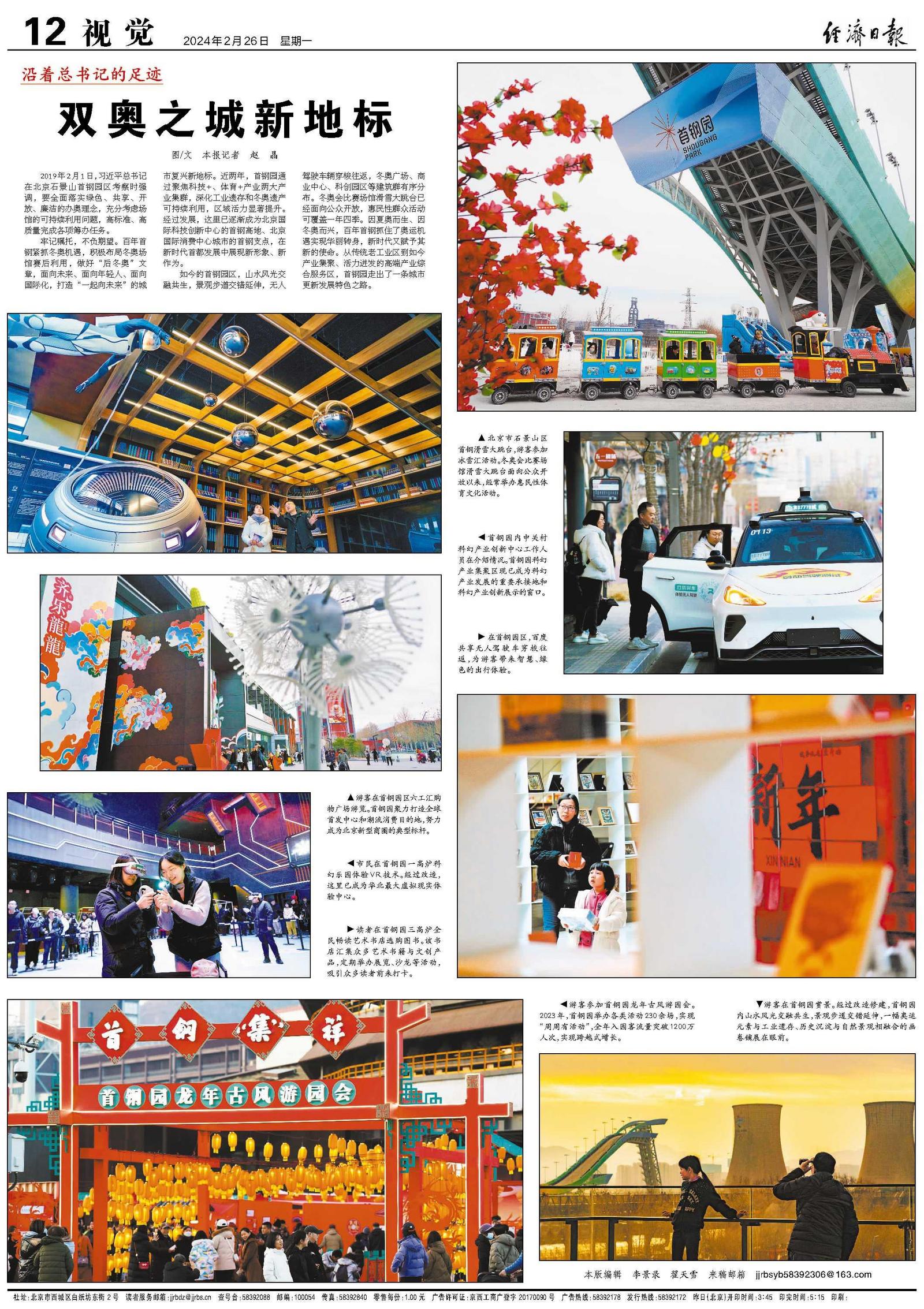 如今的首钢园区,山水风光交融共生,景观步道交错延伸,无人驾驶车辆穿梭往返,冬奥广场、商业中心、科创园区等建筑群有序分布。冬奥会比赛场馆滑雪大跳台已经面向公众开放,惠民性群众活动可覆盖一年四季。因夏奥而生、因冬奥而兴,百年首钢抓住了奥运机遇实现华丽转身,新时代又赋予其新的使命。从传统老工业区到如今产业集聚、活力迸发的高端产业综合服务区,首钢园走出了一条城市更新发展特色之路。