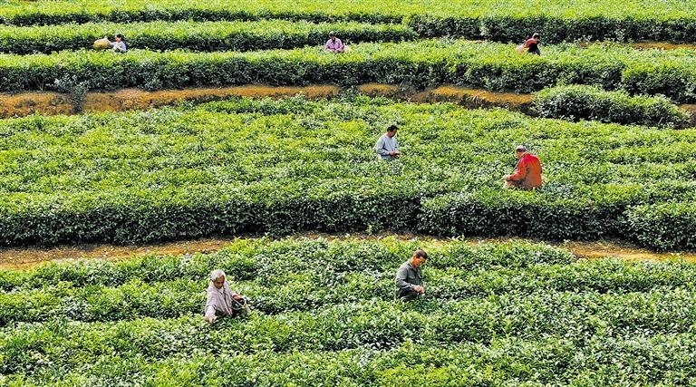 2月24日,江西省赣州市定南县天九镇新坳村茶园,茶农抢抓利好天气采摘春茶。定南县依托地理区位和气候优势,大力发展茶产业,带动乡村产业振兴和农户增收。朱海鹏摄(中经视觉)