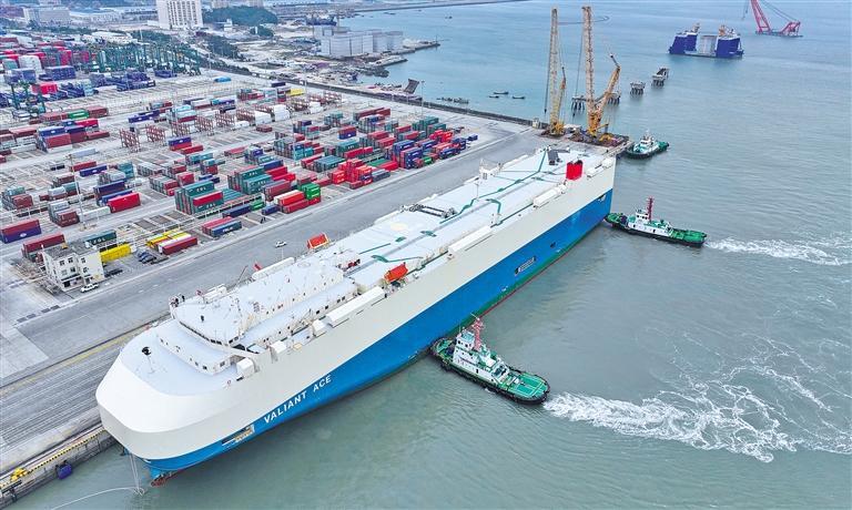 2月26日,福建省福州港江阴港区,汽车滚装船正在靠泊。当地边检部门主动靠前服务,推行出口汽车堆场区、限定区、船舶区“三区一体”边检勤务模式,助力国产汽车顺畅通关。 谢贵明摄 (中经视觉)