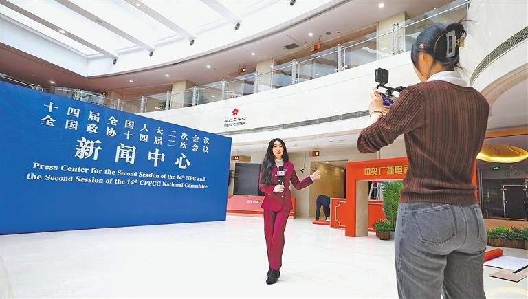 2月27日,记者在两会新闻中心报道。当日,设在北京西长安街北侧梅地亚中心的两会新闻中心正式启用。据悉,目前已有3000多名中外记者报名采访全国两会。