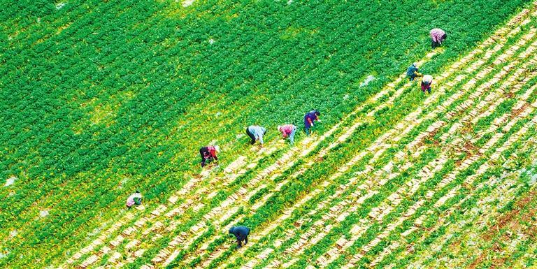 2月26日,重庆市开州区临江镇蔬菜种植基地村民采收萝卜。当地近年来大力发展萝卜、螺丝椒等蔬菜种植,在供应本地“菜篮子”的同时,还销往渝东北、川东北、长江沿线等地区,带动农民增收致富,助力乡村产业振兴。