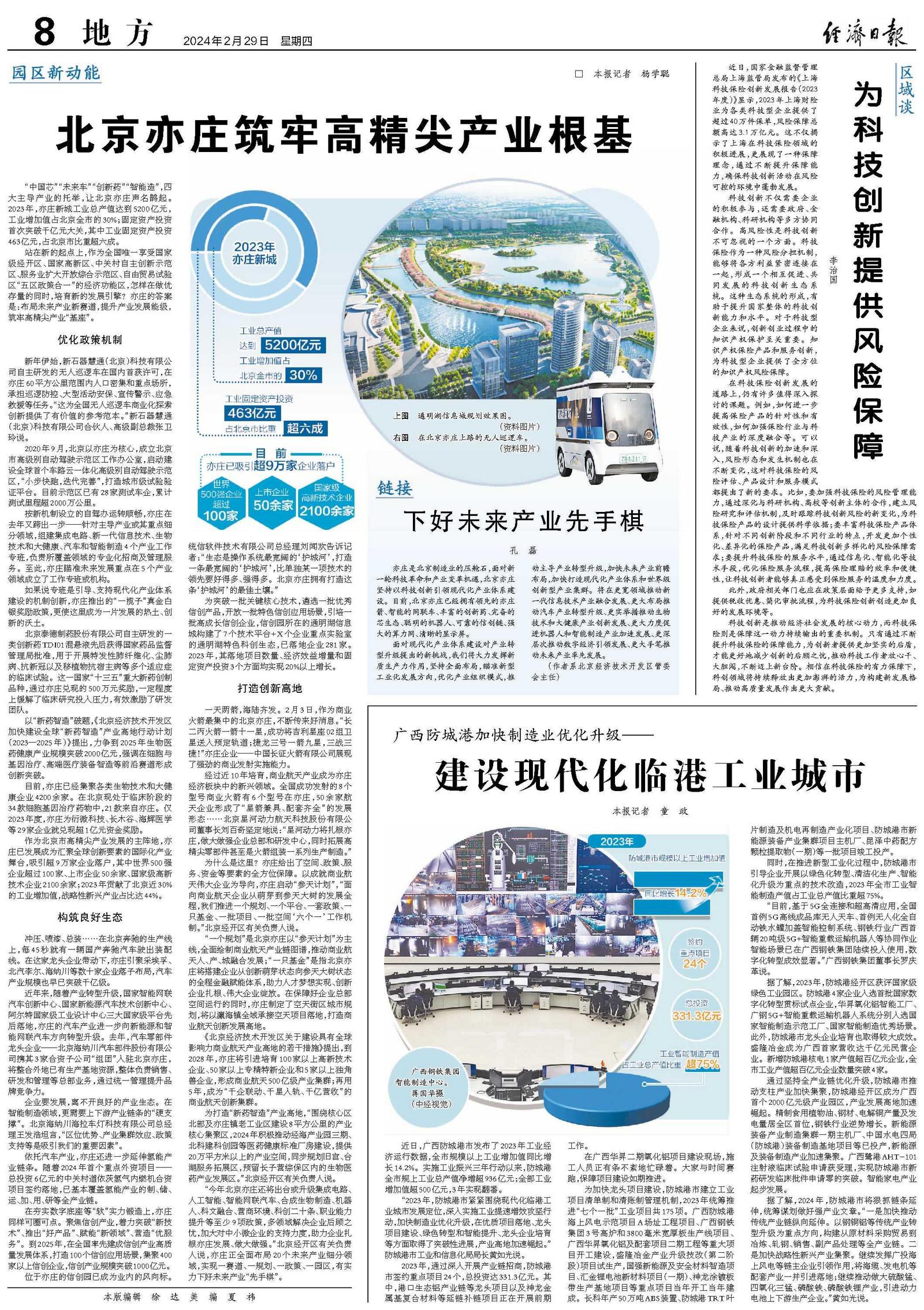 “2023年,防城港市紧紧围绕现代化临港工业城市发展定位,深入实施工业提速增效攻坚行动,加快制造业优化升级,在优质项目落地、龙头项目建设、绿色转型和智能提升、龙头企业培育等方面取得了突破性进展,产业高地加速崛起。”防城港市工业和信息化局局长黄如光说。