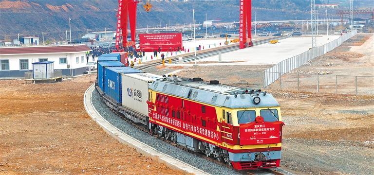 2月29日,渝怀铁路重庆黔江站450万吨货场集装箱功能区投用,首列装载着当地出产商品的西部陆海新通道(黔江—钦州)集装箱班列发出,所载商品将经广西钦州港转海运出口至东南亚地区。