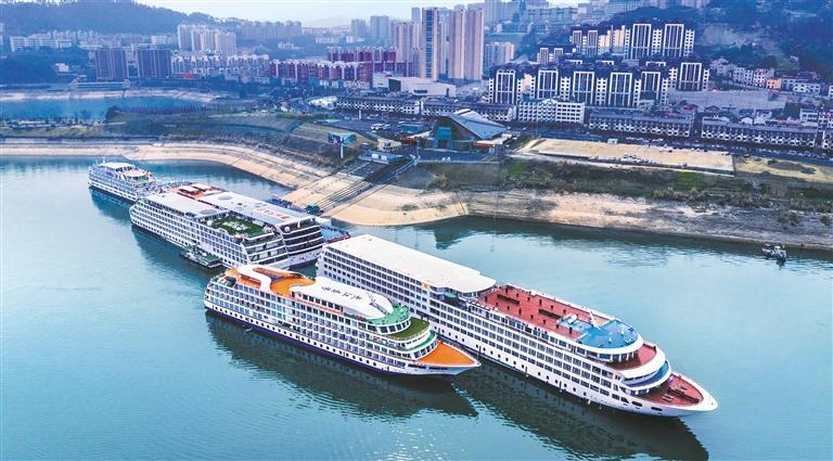 3月1日,长江游轮停靠在三峡库区湖北省宜昌市秭归县旅游港口。去年长江游轮全年共计发船5414艘次,完成客运量137.62万人次,创三峡水库成库20年来新高,有力推动了长江经济带绿色发展。