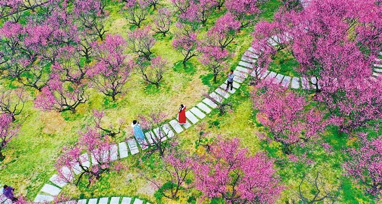 早春时节,江西省赣州市大余县梅关风景区,连片的梅花竞相绽放,吸引许多身穿汉服的游客前来打卡。近年来,作为国家历史文化名城的赣州市,旅游新业态蓬勃发展,国风国潮从“小众爱好”逐步衍生出一个大产业。