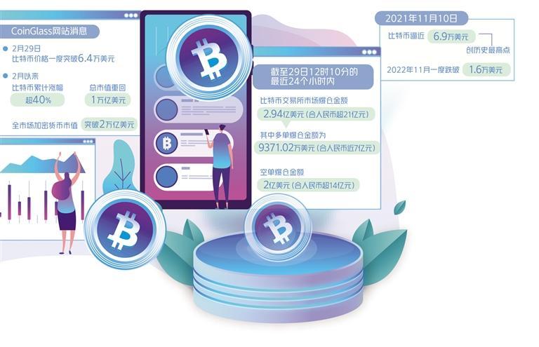 近日,比特币价格突破60000美元,2月29日更是一度突破6.4万美元,近一个月涨幅超过40%。此轮比特币上涨动因在哪?未来走势如何?面临哪些投资风险?记者采访了业内专家。