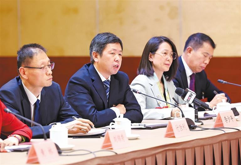 全国人大代表,江西省委书记、省人大常委会主任尹弘向记者们历数江西制造的“中国第一”、“惠通四方”的开放优势、美丽中国的“江西样板”,从加快构建现代化产业体系、着力打造内陆地区改革开放高地、深入推进乡村全面振兴、用心用情造福老区人民4个方面,介绍了奋力谱写中国式现代化江西篇章的生动实践。