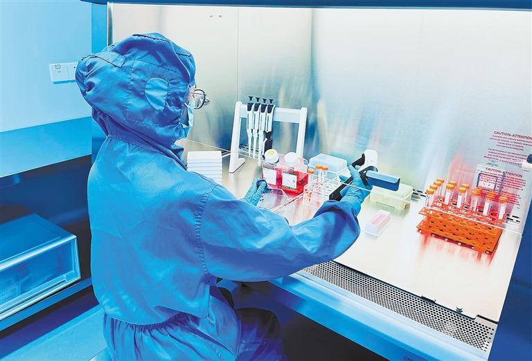 在重庆国际生物城重庆智翔金泰生物制药股份有限公司(以下简称“智翔金泰”)的无菌实验室里,工作人员正通过显微镜对器皿中的液体进行观察,而后进行培养、提取。企业自主研发的IL-17A靶点药物有望今年上市,将为广大银屑病患者带来更多治疗选择。