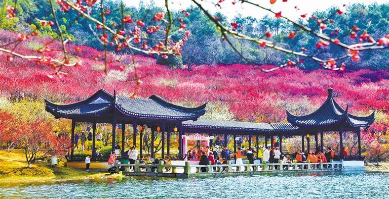 ③3月3日,江苏张家港市香山梅岭梅花竞相绽放,游客纷至沓来。施柏荣摄(中经视觉)