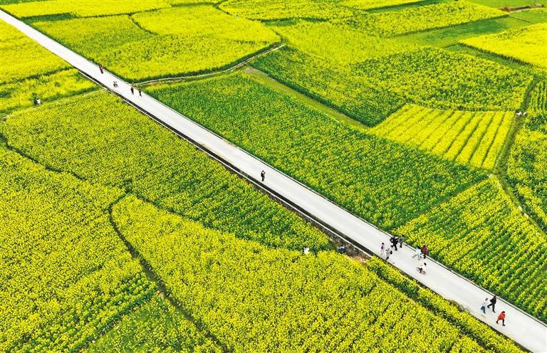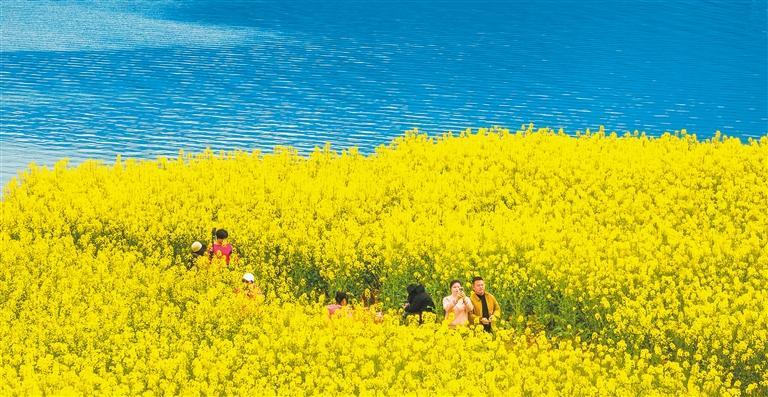 ①2月29日,游客在重庆开州区丰乐街道油菜花田踏春游玩。王晓宇摄(中经视觉)