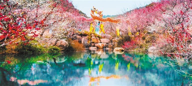 ⑥3月2日,浙江长兴县龙山街道东方梅园,非遗鸳鸯龙表演与满园春色相映成趣。