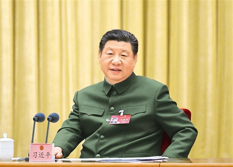 3月7日下午,中共中央总书记、国家主席、中央军委主席习近平出席十四届全国人大二次会议解放军和武警部队代表团全体会议并发表重要讲话。新华社记者 李 刚摄