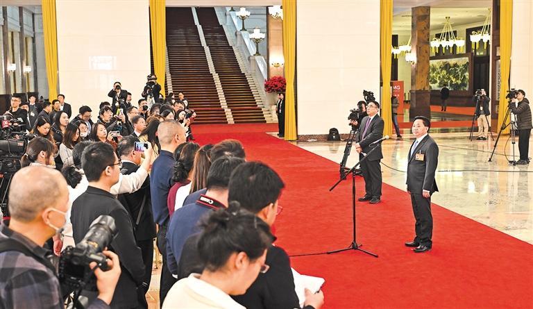 本报北京3月8日讯(记者吴浩、童云斐)十四届全国人大二次会议第二场“部长通道”8日上午开启。工业和信息化部部长金壮龙、民政部部长陆治原、生态环境部部长黄润秋、交通运输部部长李小鹏、国家市场监督管理总局局长罗文接受媒体采访。