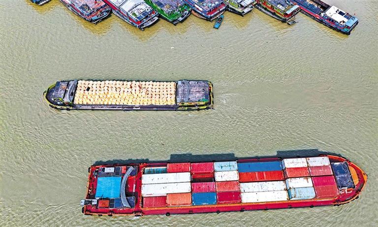3月7日,货船行驶在京杭大运河江苏淮安段。京杭大运河上运载化肥、种子、建材等货物的船舶在有序航行。贺敬华摄(中经视觉)