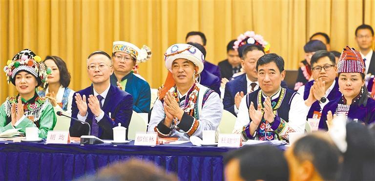 ▼3月10日,人大云南代表团举行全体会议审议报告。代表们为精彩发言鼓掌。