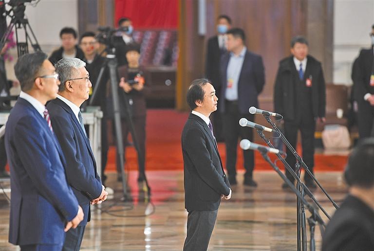▲3月4日,十四届全国人大二次会议在北京人民大会堂举行新闻发布会。大会发言人娄勤俭回答中外记者提问。