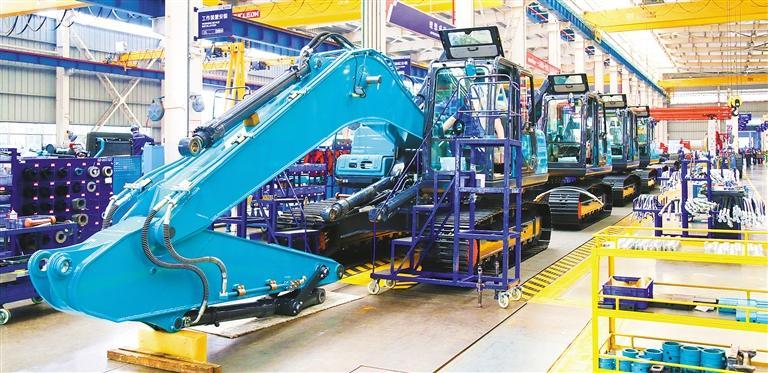 湖南长沙山河智能装备股份有限公司的挖机生产线。舒 展摄
