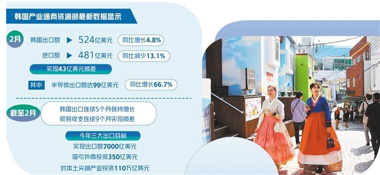 数据显示,截至今年2月,韩国出口已连续5个月保持增长势头,贸易收支连续9个月实现顺差。有评价称,今年韩国出口将彻底摆脱低迷,呈现明显复苏趋势。韩国政府也趁势提出了今年的出口扩大战略,力争全年出口额刷新历史极值。