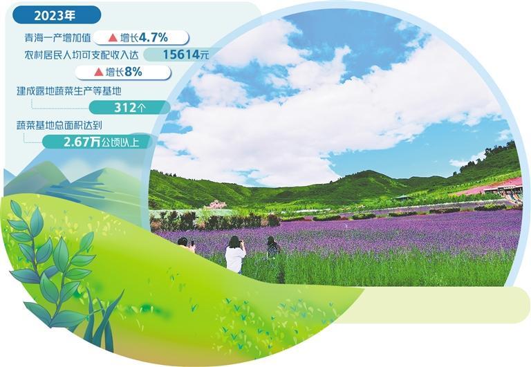 2023年,青海出台《关于加快推进高原冷凉蔬菜产业发展实施意见》,全省建成露地蔬菜生产等基地312个,建成“供港澳”蔬菜种植基地1266.7公顷,蔬菜基地总面积达到2.67万公顷以上。青海还建成“青海馆”“茶马互市”产业链数字化等线上交易平台,全年输出大宗绿色有机农畜产品价值168.2亿元。