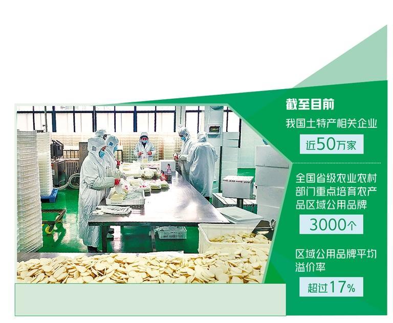 越来越多土特产进入市场并打响了品牌。天眼查专业版数据显示,截至目前,我国土特产相关企业近50万家。农业农村部有关负责人介绍,近年来,我国深入实施品牌强农战略,从培育数量看,全国省级农业农村部门重点培育农产品区域公用品牌3000个;从品牌效益看,省级重点培育的区域公用品牌平均溢价率超过17%。