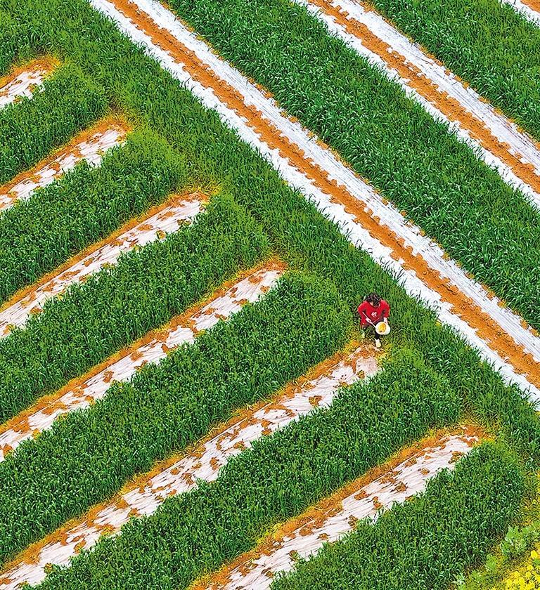 3月17日,四川省阆中市江南街道办事处白溪村村民在田里施肥。王玉贵摄(中经视觉)